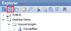 Beispiel: Sind Sie vom Explorer in die Ablage-Ansicht gewechselt, dann wechseln Sie über einen erneuten Mausklick auf das Icon "Ablage-Ansicht" zurück in den Explorer usw.