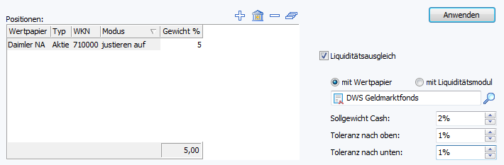 Über den Button "Anwenden" kann die Festlegung auf allen Portfolios neu durchgerechnet werden.