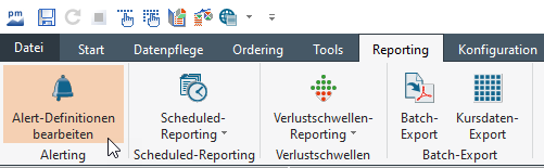 - Wählen Sie auf der Registerkarte "Reporting" das Icon "Alert-Definitionen bearbeiten".