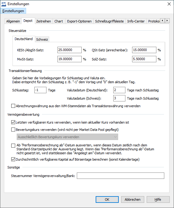 Allgemeine Depoteinstellungen