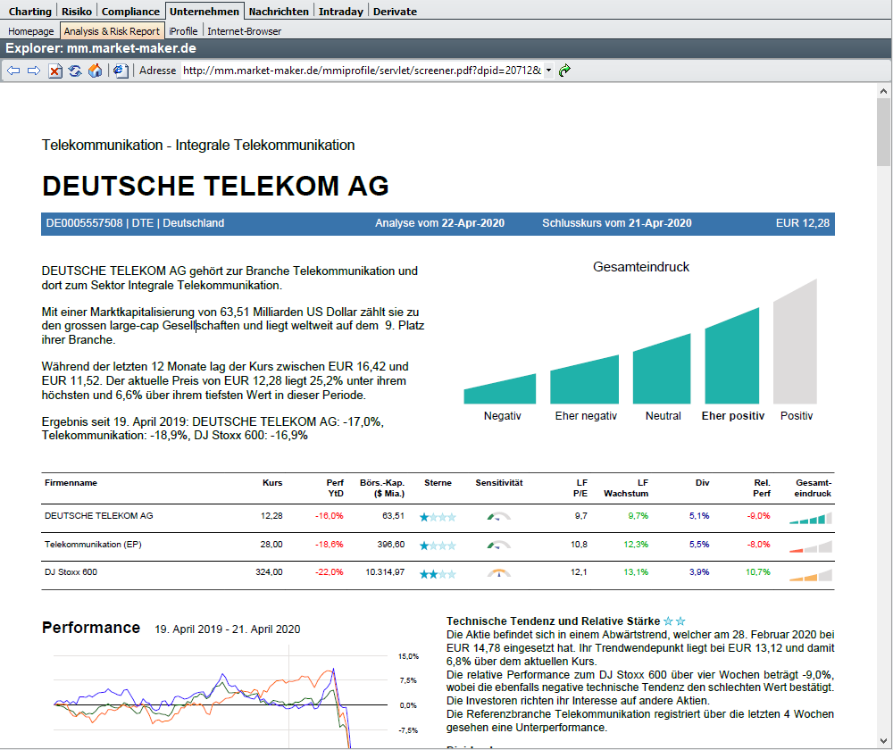 Sie können aus Ihrem Infront Portfolio Manager heraus direkt auf diese Unternehmensdaten, den Analysis & Risk Report, zugreifen.
