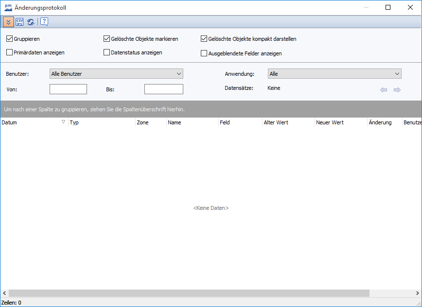 Wählen Sie auf der Registerkarte "Datenpflege" das Icon "Änderungsprotokoll anzeigen". Das Änderungsprotokoll wird geöffnet.