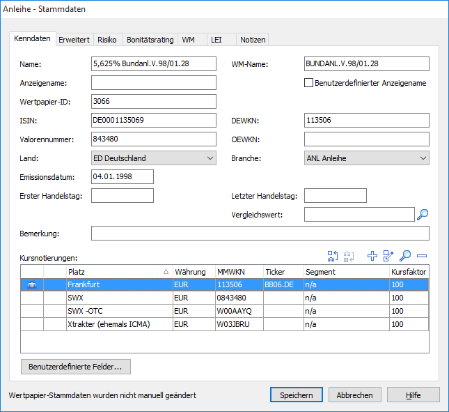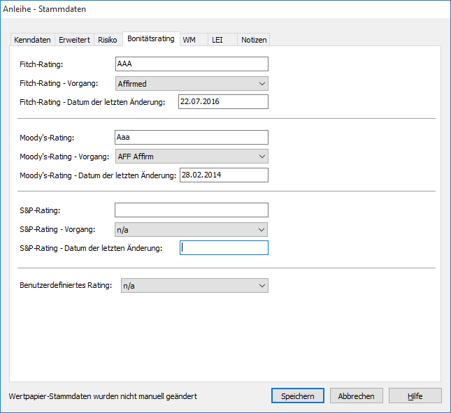 In den Anleihe-Stammdaten finden Sie alle Rating-Informationen auf der Registerkarte "Bonitätsrating".