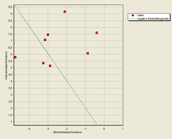 Der Berechnung der positiven und negativen Elastizitäten wird das Modell zugrunde gelegt, dass zum einen steigende und fallende Marktphasen getrennt zu beobachten und somit auch zu untersuchen sind, zum anderen auch keine Managementleistung (für Fonds) festgestellt werden können. Daraus ergibt sich ein lineares Regressionsmodell, das mit Daten über n Perioden berechnet wird.