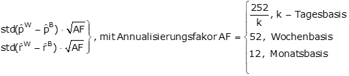 Der Tracking-Error ist definiert als annualisierte Standardabweichung über n Stichprobenperioden der Differenzenzeitreihe von Wertpapierperformance und Basispapierperformance (vgl. Vorbemerkung).