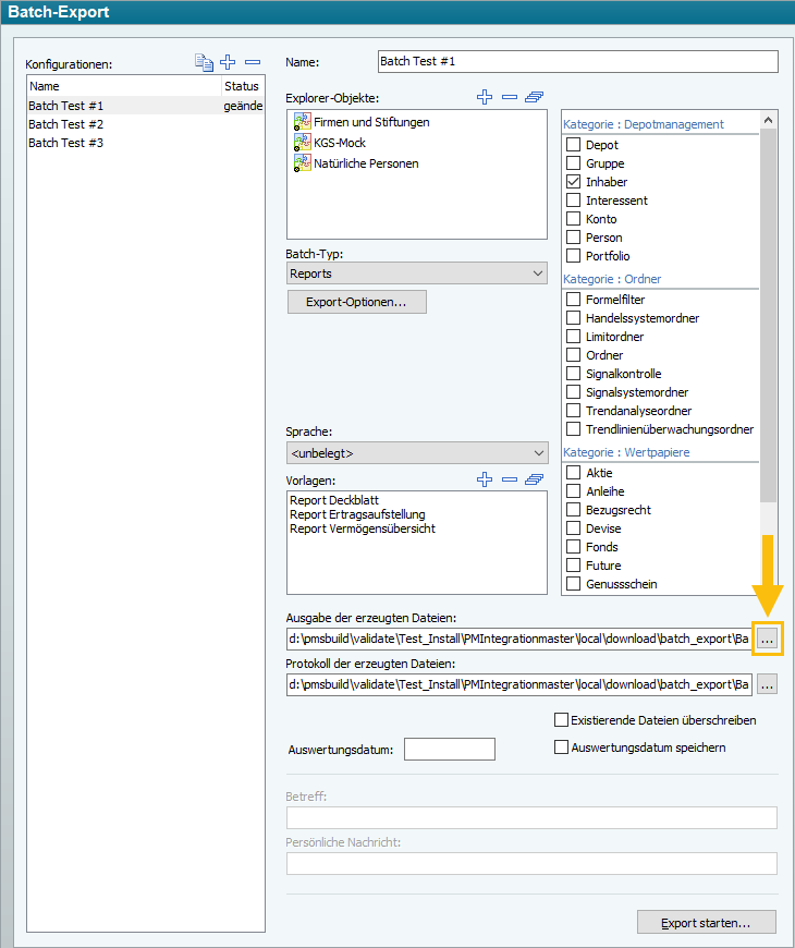 - Konfigurieren Sie die Batch-Export-Konfiguration wie in den Abschnitten Batch-Export konfigurieren und Ausgabe der erzeugten Dateien beschrieben.