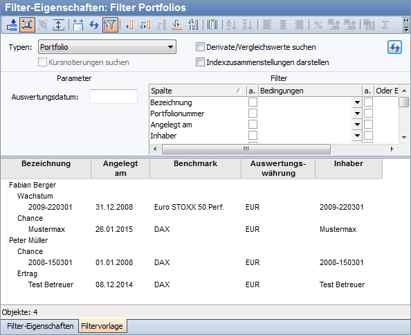 Beispiel: Depotfilter nach Betreuern und Asset Allocation gruppiert