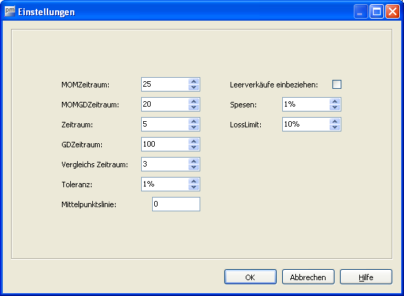 Der "Signalzeitraum" gibt an, für wie viele Tage rückwirkend das System rechnen soll. Geben Sie hier z. B. 150 (Börsentage) an.