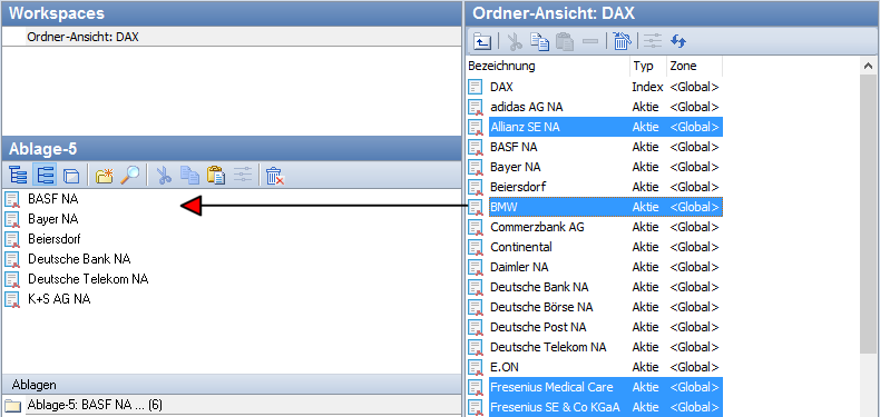 - Um Objekte in die Ablage zu bringen, markieren Sie im Explorer einen Ordner oder Filter.
