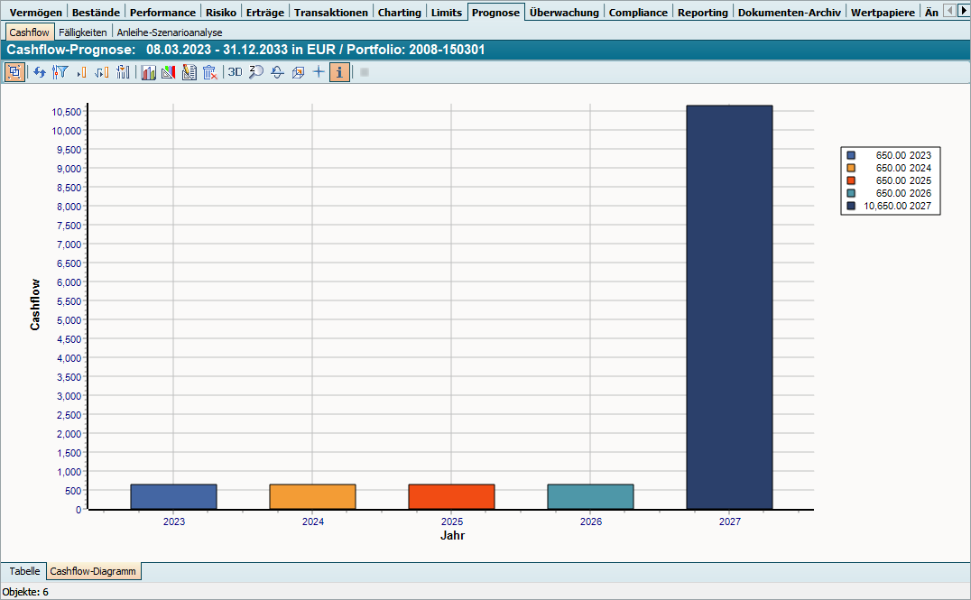 Das Balkendiagramm zeigt übersichtlich die prognostizierten Cashflows der nächsten Jahre.
