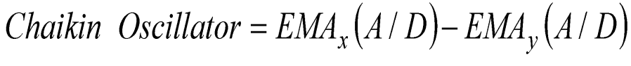 Idee des Oszillators und damit der Weiterentwicklung ist es, Trendwechsel in der zugrunde liegenden Accumulation/Distribution Line anzuzeigen, also eine typische Oszillator-Aufgabe wahrzunehmen. Auf die Accumulation/Distribution Line werden zwei exponentielle GDs berechnet, ein kurzer und ein langer. Dann wird der lange GD vom kurzen GD subtrahiert. Im Ergebnis entsteht ein nach oben und unten offener Verlauf, der um die Nulllinie schwankt.