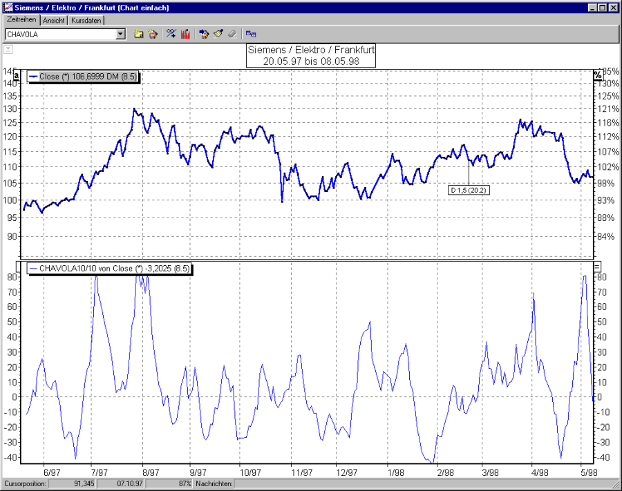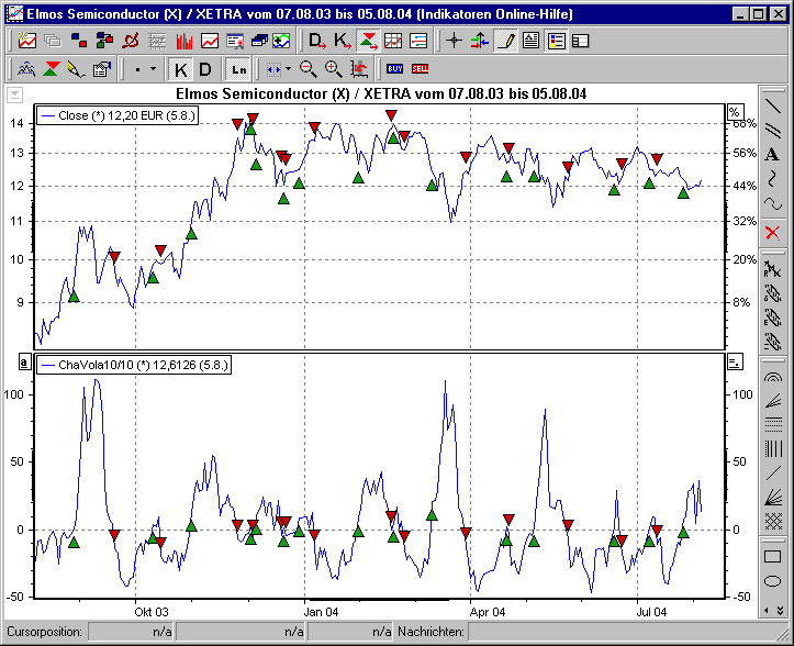 Chaikin`s Volatility dient in der Regel nicht zu Herleitung konkreter Signale, sondern vielmehr zur "Abrundung" eines Handelssystems.