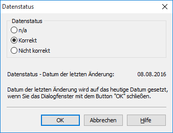 Aktivieren Sie dann im erscheinenden Dialogfenster "Datenstatus" den gewünschten Datenstatus, z. B. "Korrekt".
