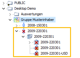 Im Explorer können auch deaktivierte Depotobjekte angezeigt werden. Diese erkennen Sie im Explorer an den entsprechenden Icons: