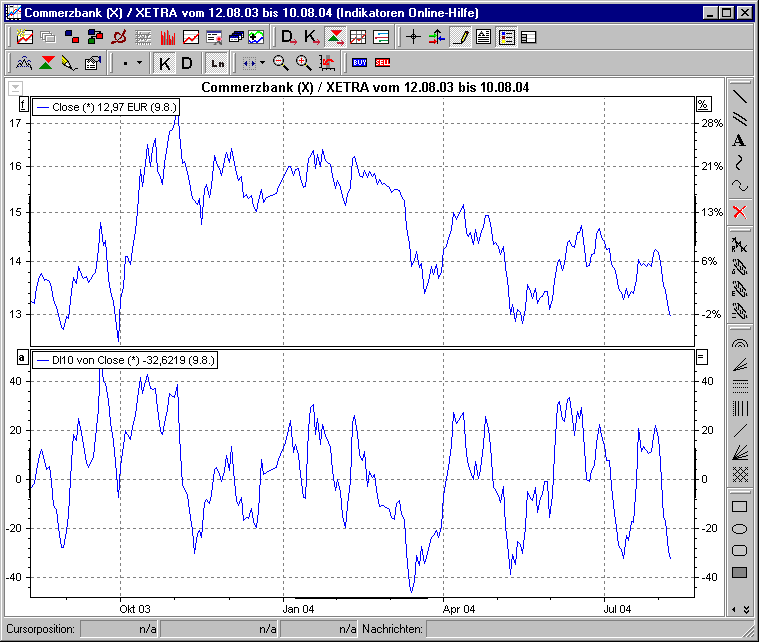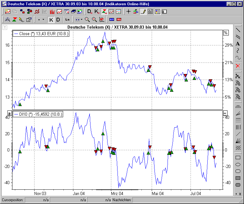 - Eine Divergenz zwischen Indikator und Basistitel deutet auf eine bevorstehende Kursschwäche hin.