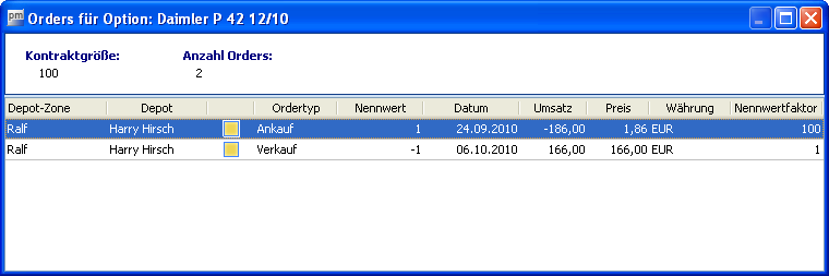 Im erscheinenden Dialogfenster "Orders für Option" finden Sie folgende Informationen, die Sie hier nicht editieren können: