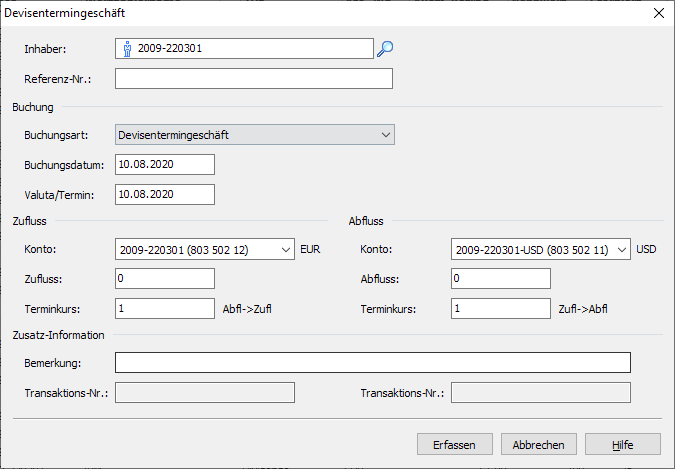 Es erscheint das Dialogfenster "Devisentermingeschäft".