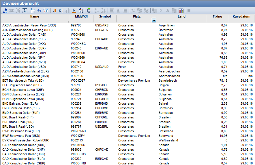 Die Spalten der "Devisenübersicht" im Einzelnen: