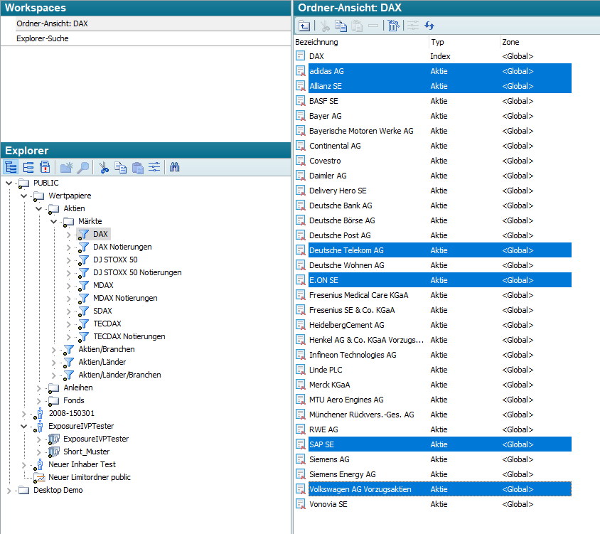 Oder drücken Sie die Taste <F2>. - Im rechts geöffneten Bereich wird der Inhalt des Objekts angezeigt (z. B. die Wertpapiere eines Ordners).