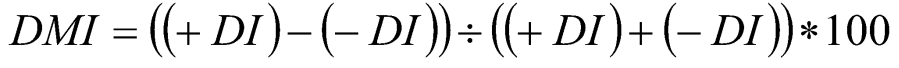 Die Basis für den DMI bilden der +DI und der –DI. Beide messen die Stärke ihrer Bewegung, der +DI die Aufwärtsstärke, der –DI die Abwärtsstärke. Liegt der +DI über dem –DI, herrscht ein Aufwärtstrend vor, im umgekehrten Falle ein Abwärtstrend. Je weiter die beiden Linien auseinander liegen, um stärker ist der jeweilige Trend. Der DMI fasst die beiden Linien zusammen, je höher sein Wert ist, um so stärker ist der Trend. Ob es sich dabei um einen Auf- oder Abwärtstrend handelt, sagt der DMI nicht.