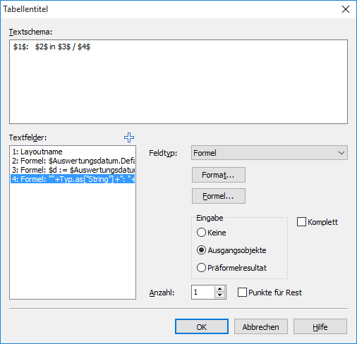 Dynamische Überschriften bieten Ihnen die Möglichkeit, statischen Text mit Informationen anzureichern, die sich von Auswertung zu Auswertung verändern. So können Sie z. B. einer tabellarischen Auswertung das Auswertungsdatum oder andere Parameter voranstellen, die bei jeder Auswertung neu festgelegt werden (z. B. die Währung).