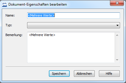Bearbeiten Sie mehrere Dokumente gleichzeitig, deren Eigenschaften nicht übereinstimmen, so wird dies im Dialogfenster wie folgt kenntlich gemacht: