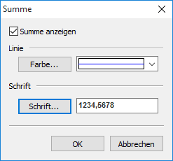 Schrift | Klicken Sie auf den Button "Schrift", um die Schriftart des Summentextes zu verändern. |