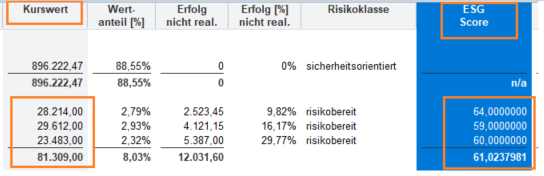 Um den durchschnittlichen ESC-Score eines Portfolios zu berechnen, kann z. B. die Vermögensübersicht als Grundlage herangezogen werden.
