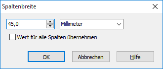 - Soll die eingestellte Breite allen Spalten der Tabelle zugewiesen werden, aktivieren Sie das Kontrollkästchen "Wert für alle Spalten übernehmen".