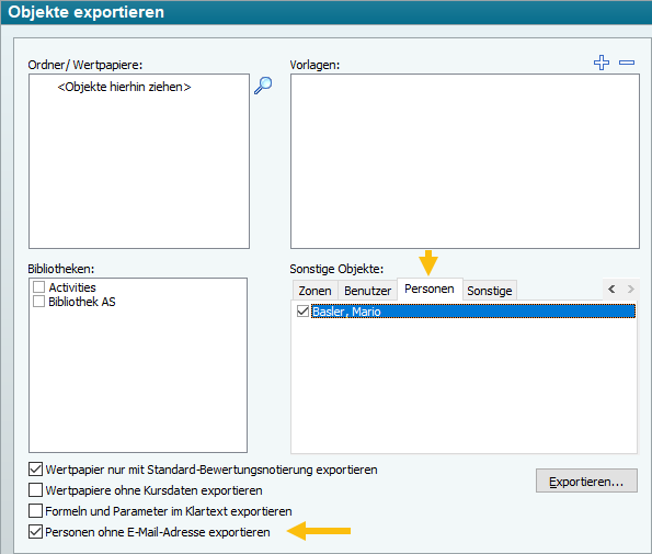 Dabei werden Personen als eigenständige Objekte exportiert.