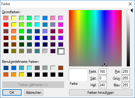 Zum Ändern von Farben gelangen Sie an verschiedenen Stellen Ihres Infront Portfolio Manager in das aus Windows bekannte Dialogfenster.