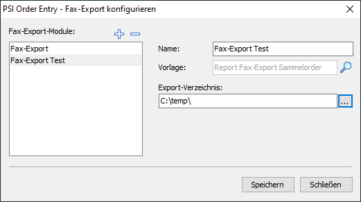 - Es erscheint das Dialogfenster "PSI Order Entry – Fax-Export konfigurieren".