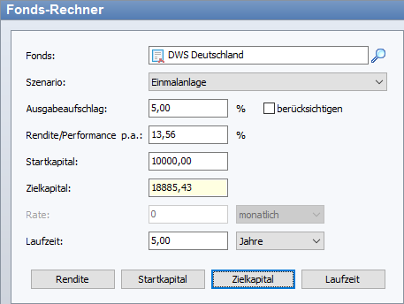 Wählen Sie auf der Registerkarte "Tools" das Icon "Fonds-Rechner".