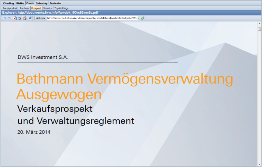 Sie haben die Möglichkeit, sich Fondsprospekte von FWW im integrierten Browser anzeigen zu lassen.