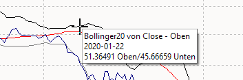 Schweben Sie mit dem Mauszeiger über einer Linie (ohne zu klicken), wird bei Mehrlinienzeitreihen, beispielsweise den Bollinger Bands, ein Hinweisfenster zu der Linie angezeigt.