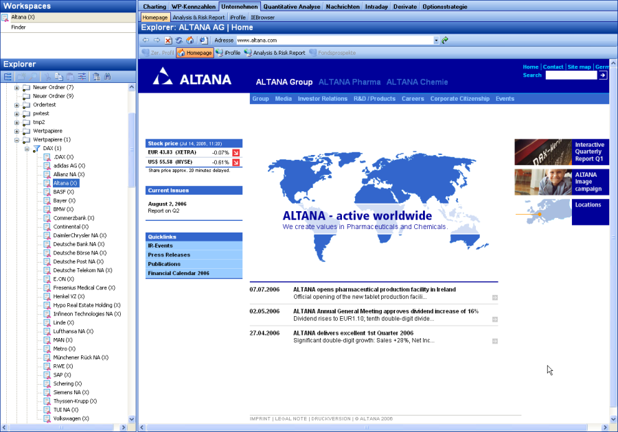 - Wechseln Sie im Workspace der Aktie auf das Worksheet "Unternehmen" und dort auf "Homepage".