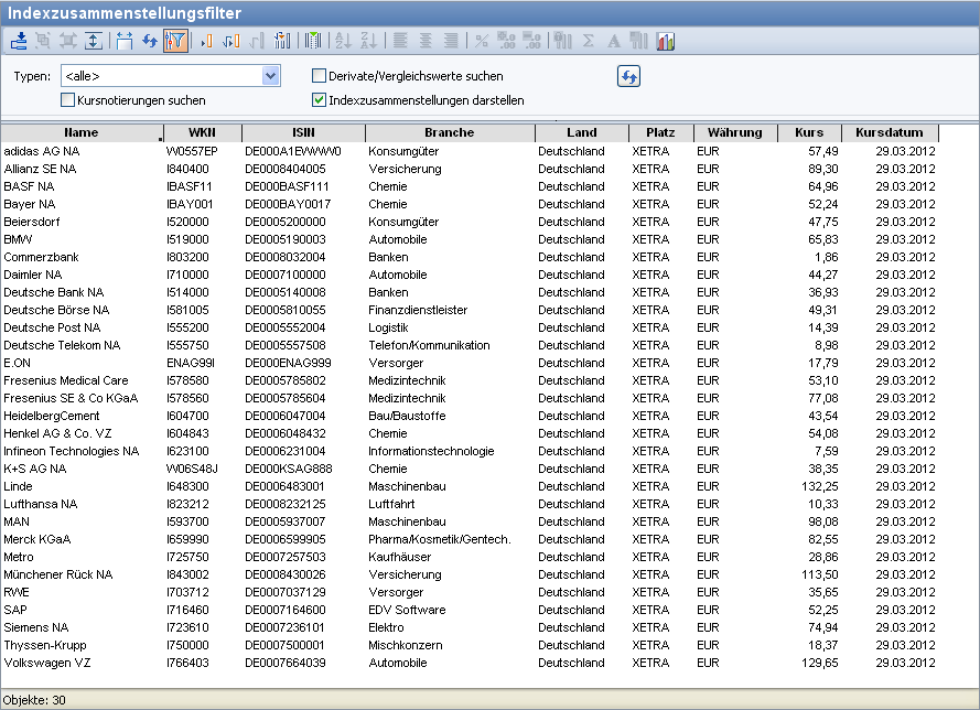 Indexobjekt alle im Index enthaltenen Kursnotierungen in einem Ordner zusammenstellt.