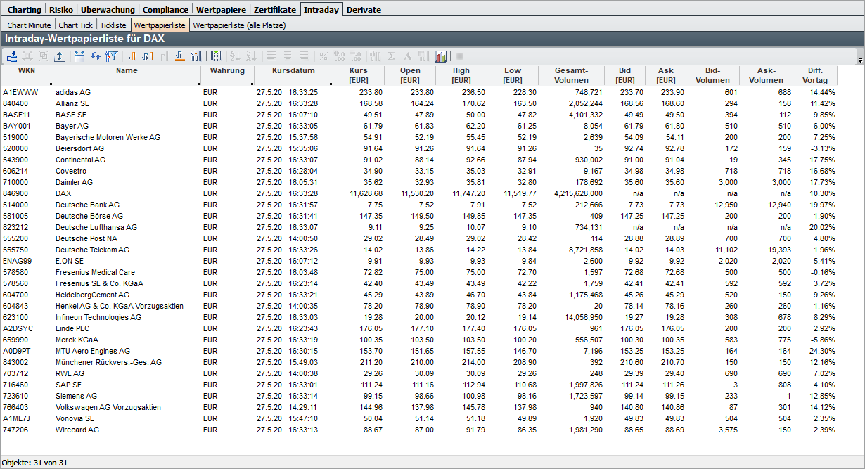 Sie finden die Vorlage "Intraday-Wertpapierliste" im Workspace von Ordnern und Filtern auf dem Worksheet "Intraday".