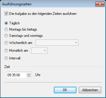Aktivieren Sie das Kontrollkästchen "Die Aufgabe zu den folgenden Zeiten ausführen" bzw. lassen Sie dieses aktiviert (Standardeinstellung).