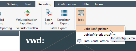Wählen Sie im Menüband auf der Registerkarte "Reporting" den Befehl JOBS KONFIGURIEREN im Menü des Icons "Jobs".