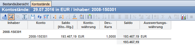 In der Auswertung "Kontostände" können Sie jederzeit den aktuellen Kontostand des entsprechenden Kontos anzeigen lassen.