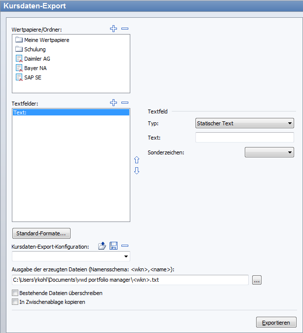 Sie gelangen in das Dialogfenster "Kursdaten-Export".