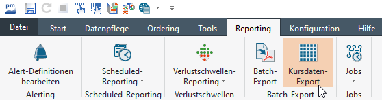 - Wählen Sie auf der Registerkarte "Reporting" das Icon "KURSDATEN-EXPORT".