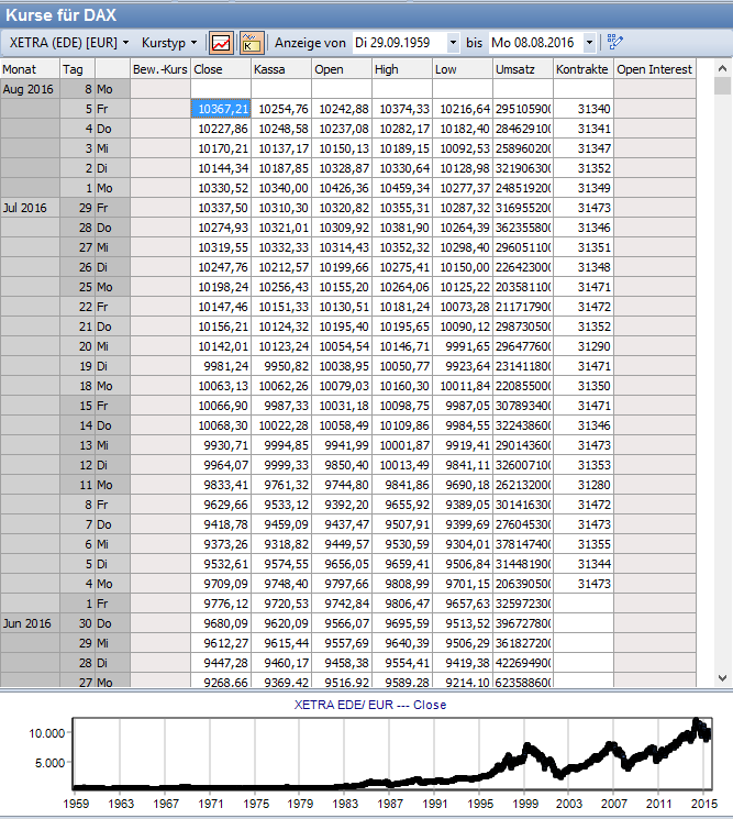 Standardeinstellung ist das erste Datum, zu dem ein Kurs für dieses Wertpapier existiert.