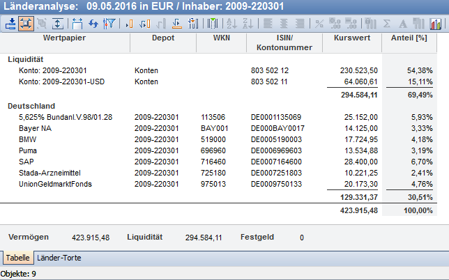 Wenn Sie erfahren möchten, auf welche Länder die Depots verteilt sind, öffnen Sie die Auswertung "Länderanalyse".