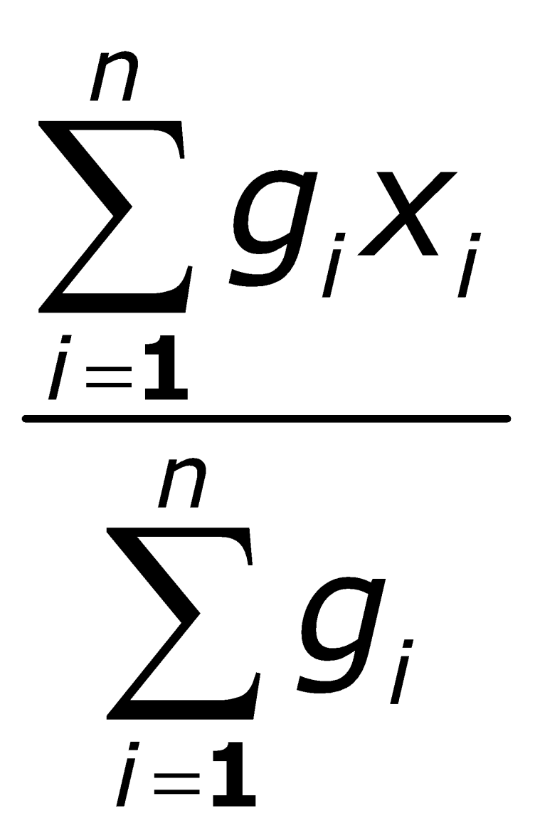 In der Beispieltabelle gilt für Spalte "X" mit Gewicht Spalte "g" also: (50*7+100*3+250*5+10*2)/50+100+250+10=1920/410=4.6829