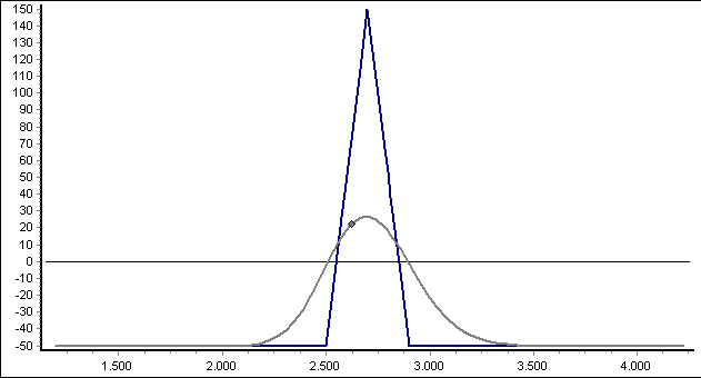 Das Gewinnpotential ist begrenzt. Den maximalen Gewinn erzielt man, wenn der Kurs des Basiswerts am Ende der Laufzeit in Höhe des mittleren Basispreises E2 notiert. Er errechnet sich als Differenz der Basispreise E2 und E1 abzgl. des Prämienaufwands.