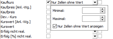 In den Filterdialogen von Tabellen haben Sie auch die Möglichkeit, die Tabelle nach den Einträgen "ohne Wert" zu filtern.