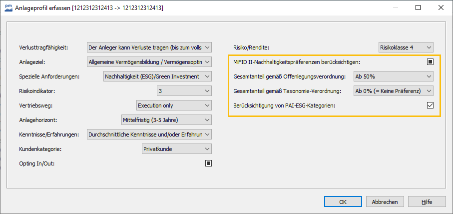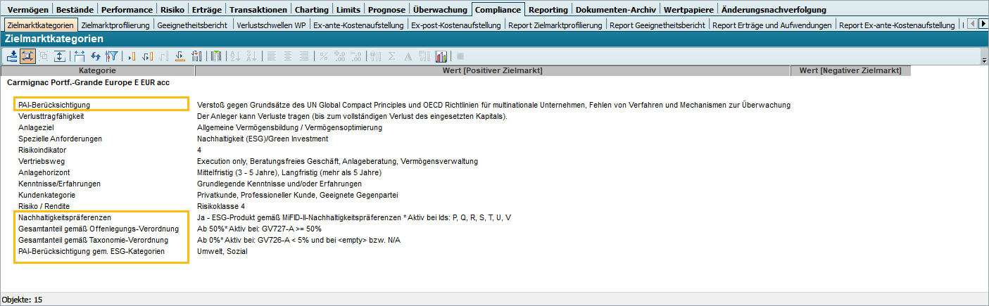 Diese Erweiterungen werden mit diesem Service-Pack auch von Ihrem Infront Portfolio Manager vollständig unterstützt. Sie finden die neuen Kategorien z. B. in den folgenden Konfigurationen und Auswertungen: