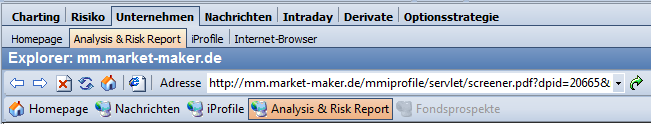 Über die bekannten Objekt-Links im oberen Bereich des Browsers können Sie per Mausklick ggf. zu weiteren Online-Tools wechseln. Zum Beispiel zu den iProfilen (je nach Abonnement) oder der Homepage des Unternehmens.